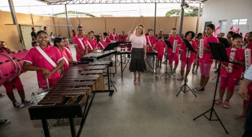Primeira-dama Márcia Pinheiro e vice-prefeito participam de comemoração aos 5 anos de formação da fanfarra do Programa Siminina