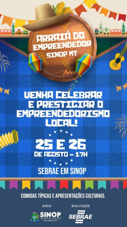 Abertas inscrições para o 1º Arraiá do Empreendedor de Sinop: evento reunirá feira de negócios e comidas típicas