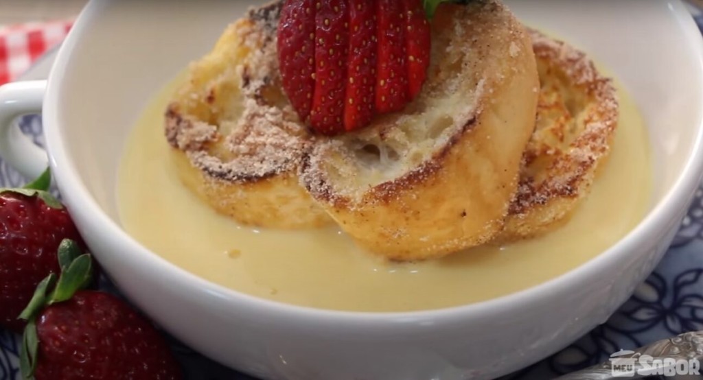 Veja só essa sobremesa gourmet e fácil de fazer para servir no almoço em família, Rabanada com Creme Inglês