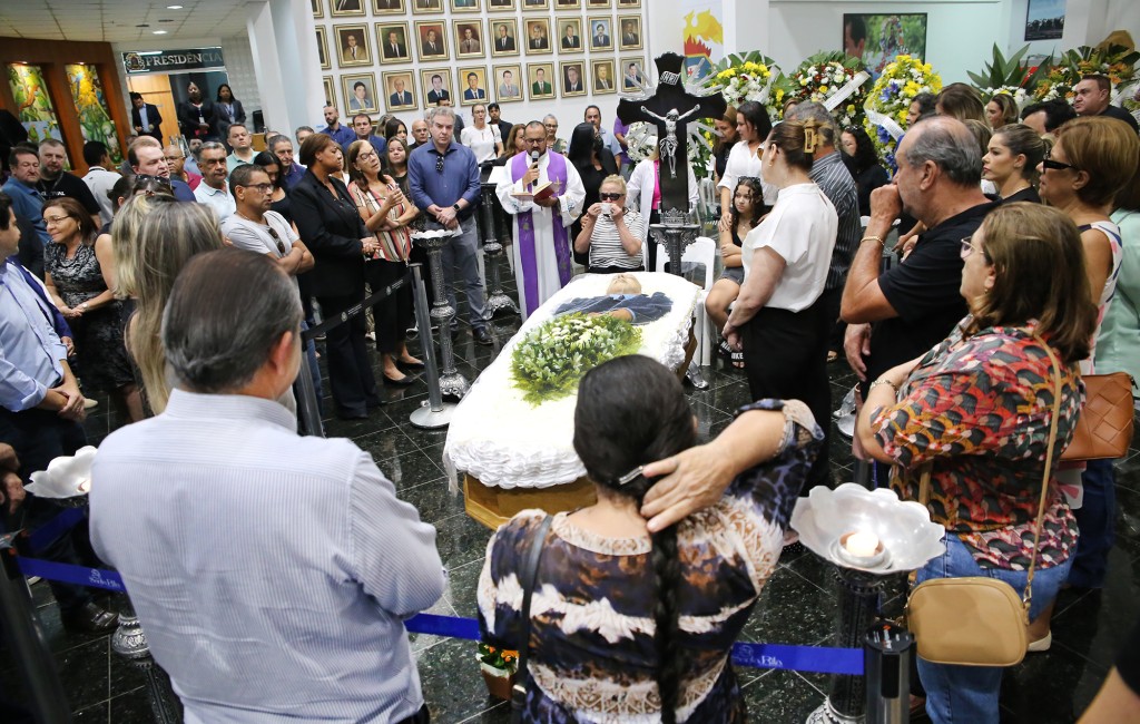 O velório do ex-deputado estadual Romoaldo Júnior, realizado no Salão Negro da Assembleia Legislativa de Mato Grosso (ALMT), ocorrido na manhã desta segunda-feira (18), foi prestigiado por amigos, familiares e personalidades da política mato-grossenses. O corpo foi sepultado, às 10 horas, no cemitério Parque Bom Jesus de Cuiabá, localizado no Coxipó, na capital. O ex-deputado