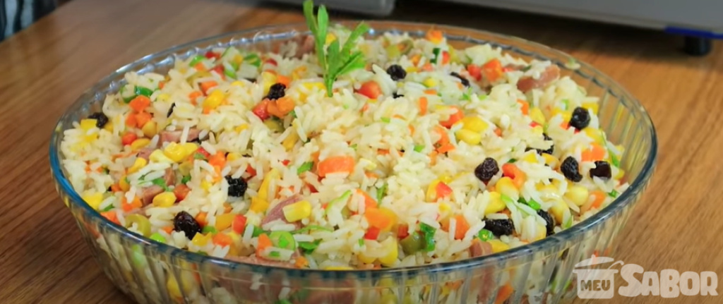 Ingredientes 5 xícaras de arroz cozido com óleo, sal e cebola 1 colher de margarina 200 g de ameixa preta sem caroço picada 2 cenouras picadas em cubinhos 200 g de uva-passa 50 g de damasco picado (opcional) 2 maçãs verde picadas Em outra panela: 2 colheres de óleo 1 cebola ralada 1 kg de