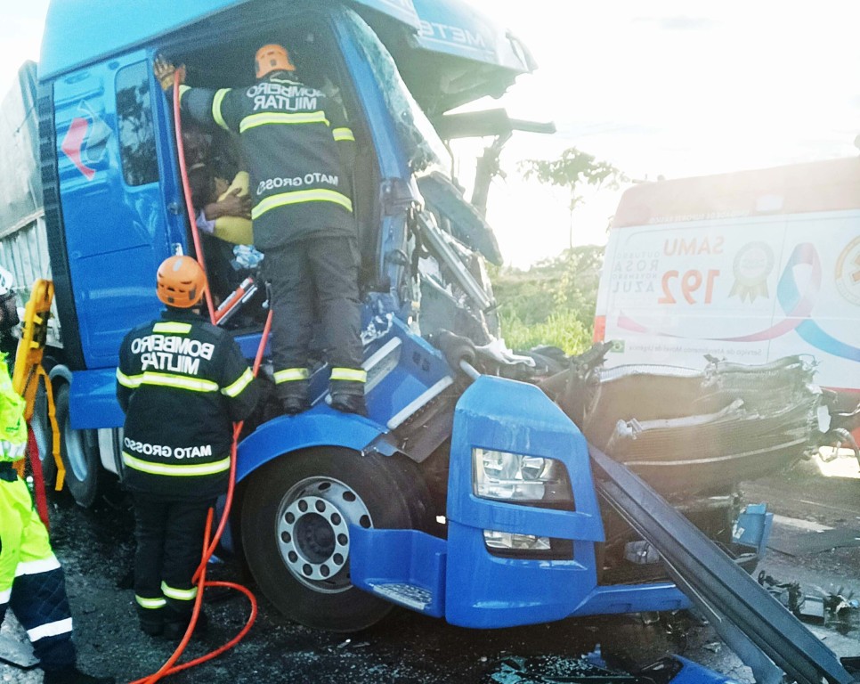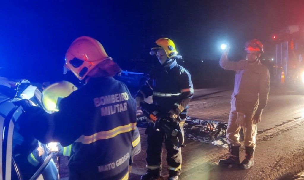 O Corpo de Bombeiros Militar de Mato Grosso (CBMMT) foi acionado, na madrugada desta segunda-feira (23.12), para atender a um acidente de trânsito envolvendo um carro e uma carreta na BR-163, no município de Sinop (a 632 km de Cuiabá). De acordo com informações obtidas no local, o veículo menor era ocupado por cinco pessoas,