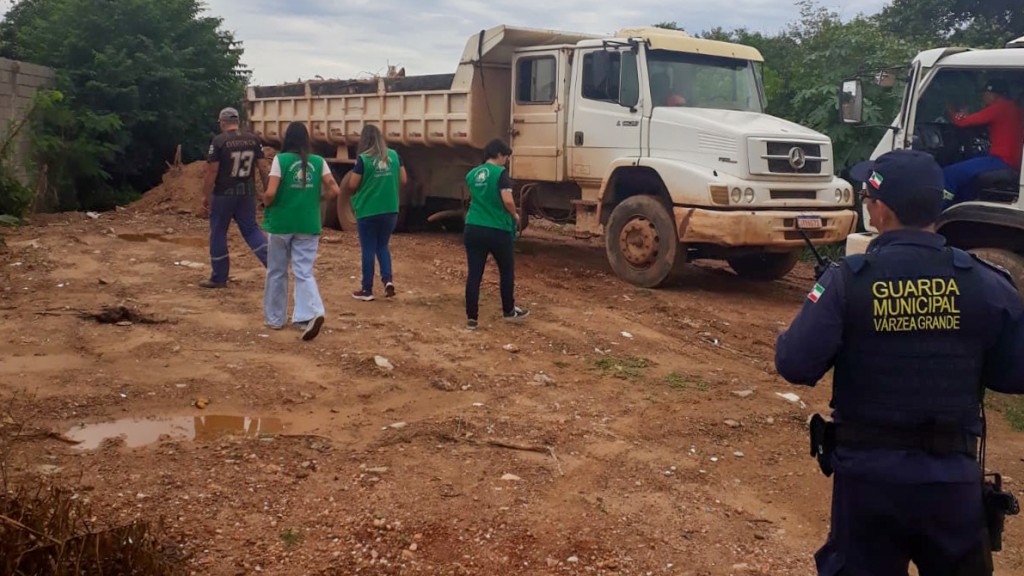 Guarda Municipal flagra caminhão despejando entulhos em área de APP Várzea Grande