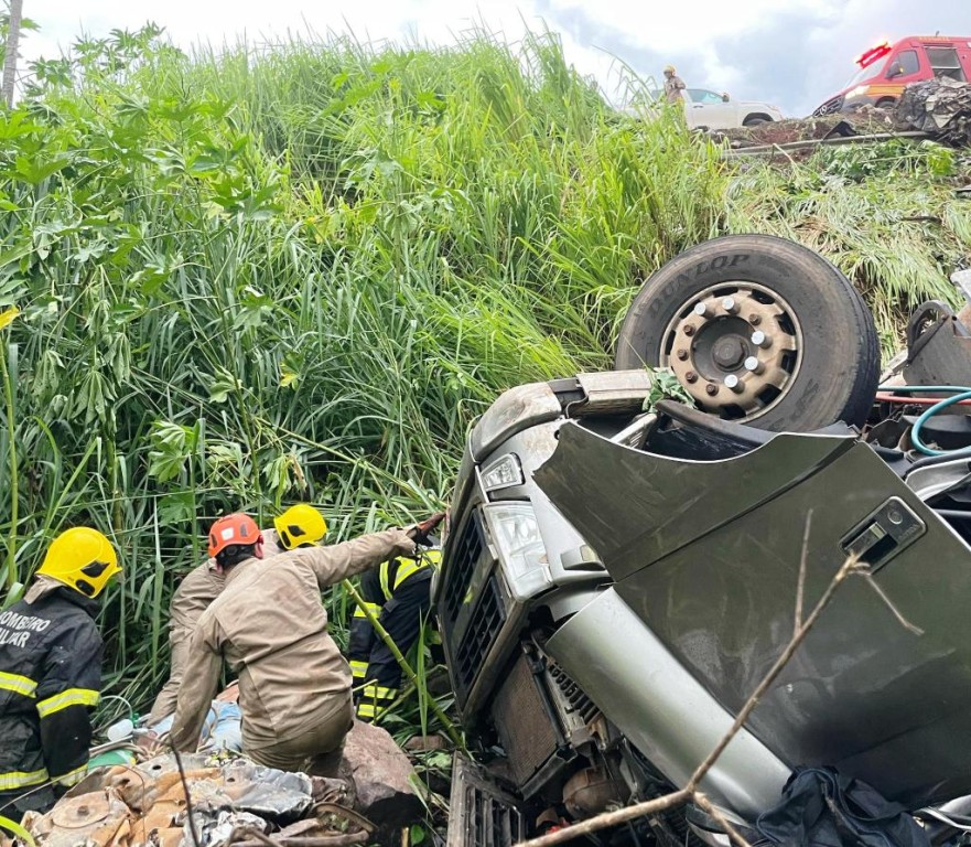 Bombeiros retiram vítima presa às ferragens após acidente na Serra do Mangaval