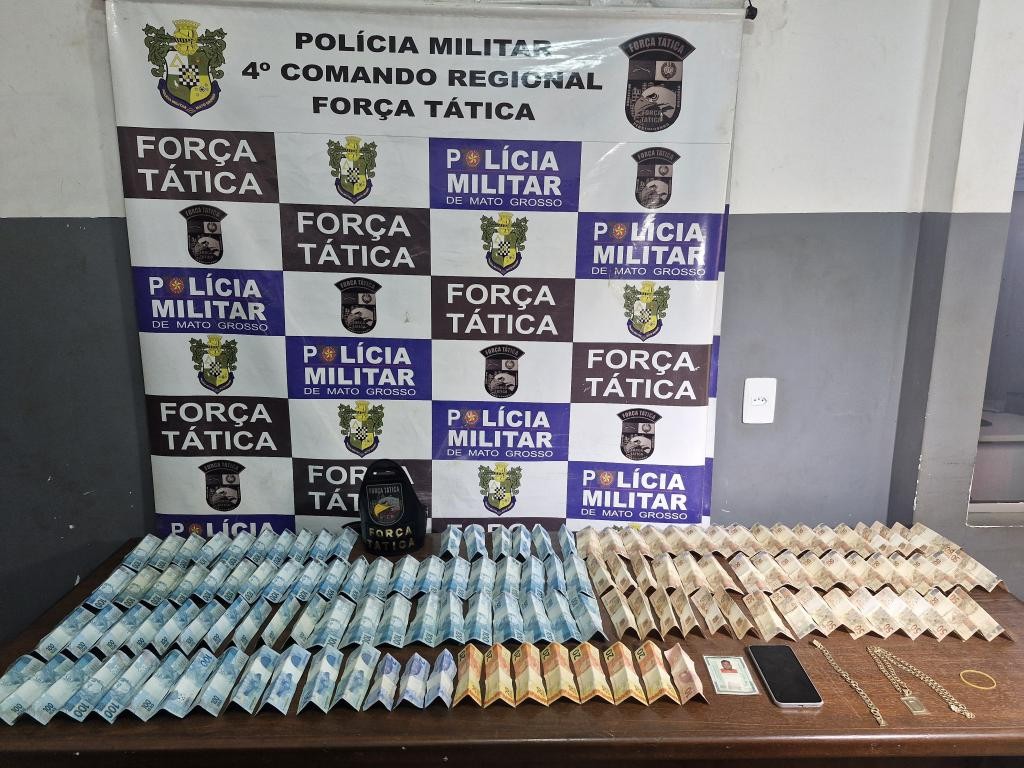 Policiais militares da Força Tática do 4º Comando Regional prenderam um homem, de 31 anos, suspeito de extorsão a comerciantes a mando de uma facção criminosa, nesta quinta-feira (10.4), em Rondonópolis. Com o homem, a PM apreendeu a quantia de R$ 10,4 mil em dinheiro proveniente do crime. Conforme o boletim de ocorrência, as equipes