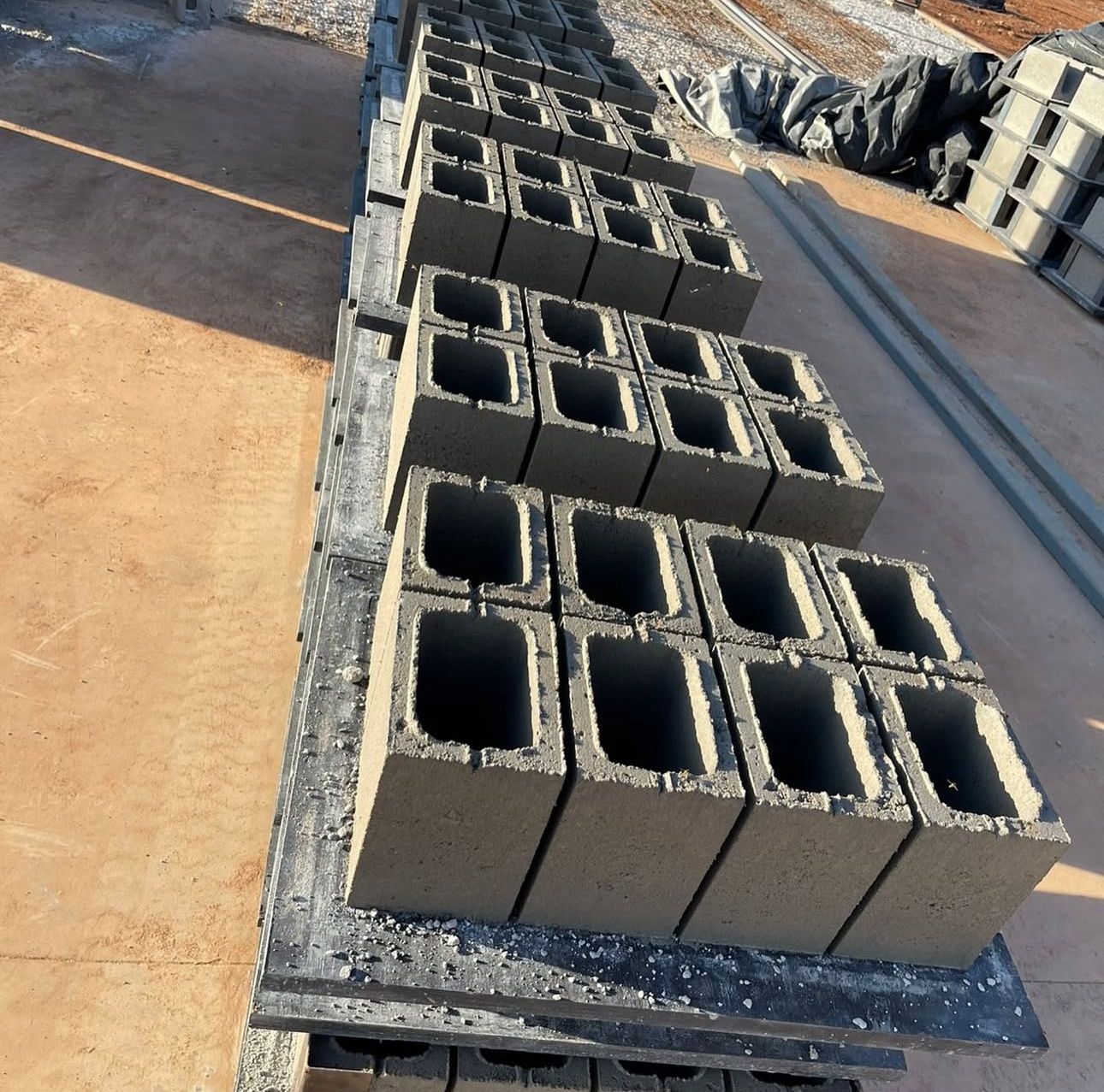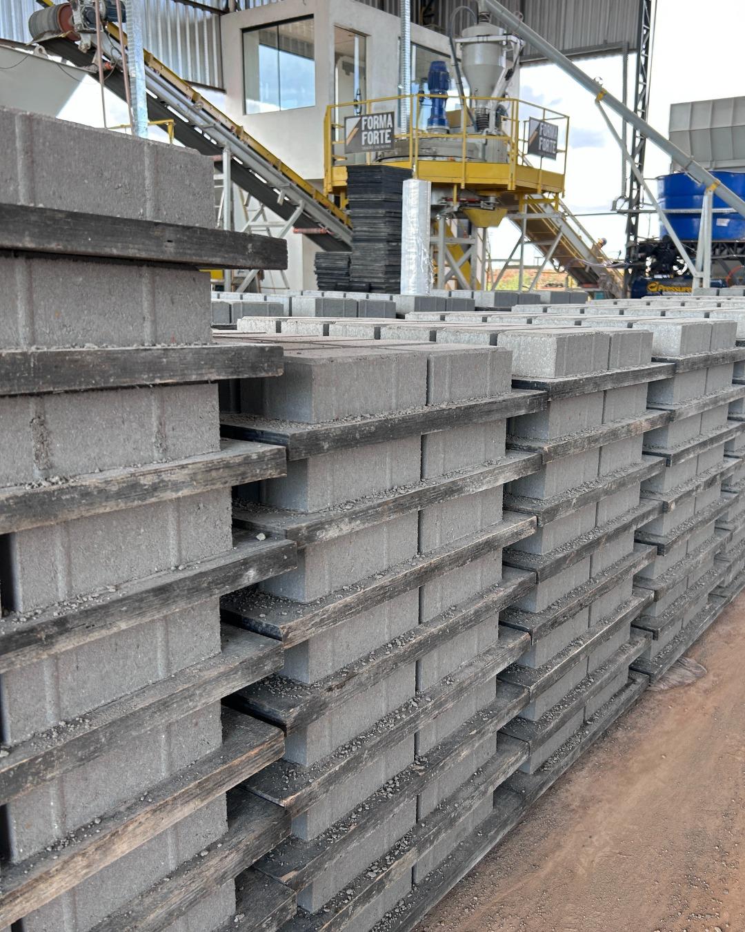 A Vibra Artefatos não adapta máquinas de outros segmentos, ela opera um parque industrial projetado desde o início para produzir blocos vibroprensados com altíssimo padrão dimensional. E esse detalhe muda tudo.