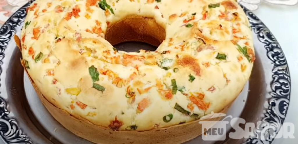 Ingredientes 1 xícara de maisena 1 xícara de leite 2 xícaras de farinha 3 colheres de manteiga 3 colheres de queijo ralado 3 colheres de fermento 1 colher de sal 3 ovos Presunto picadinho Milho verde Salsinha e cebolinha picada Tomate cortado em cubinho sem semente. Modo de Preparo Bata as claras em neve e