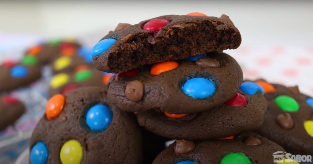 Ingredientes 1 Pacotinho de Bolo Pronto sabor Chocolate (450g) 1 Ovo 4 Colheres de Margarina Para decorar M&M’s (opcional) Gotas de chocolate (opcional) Modo de preparo Adicione todos os ingredientes em uma tigela e misture tudo muito bem. Faça bolinhas e logo em seguida amasse elas para formar disquinhos. em uma forma untada com margarina