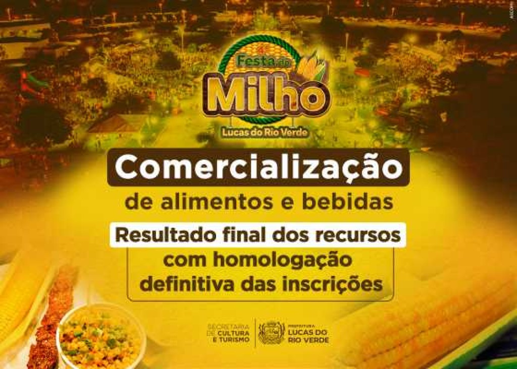 A Secretaria de Cultura e Turismo de Lucas do Rio Verde divulgou, nesta terça-feira (15), o resultado final das inscrições do Edital de Seleção nº 001/2025, voltado à comercialização de alimentos e bebidas na Praça de Alimentação da 4ª Edição da Festa do Milho. Ao todo, 29 empresas se inscreveram para participar do processo seletivo,