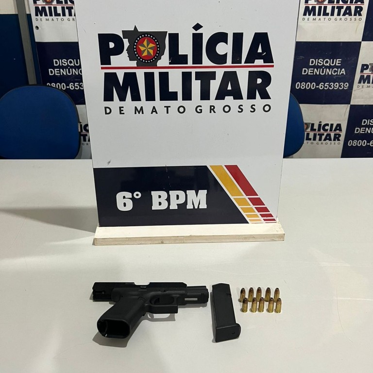 Policiais militares do 6º Batalhão prenderam um homem em flagrante por porte ilegal de arma de fogo, na madrugada desta sexta-feira (23.06), em Cáceres. Na ação, a PM apreendeu uma pistola de calibre .9mm e 10 munições. Conforme o boletim de ocorrência, a equipe do 6º BPM estava em patrulhamento pelo bairro Jardim Celeste quando