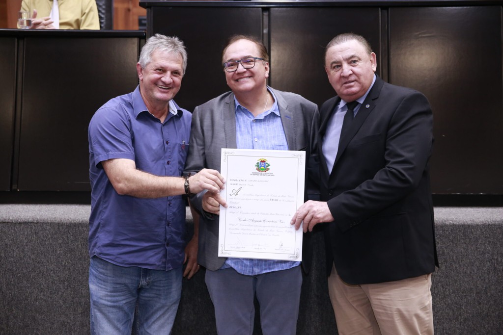 Foto: ANGELO VARELA / ALMT Títulos de cidadão mato-grossense, moções de aplausos e diversas honrarias foram entregues pelo deputado estadual Nininho (PSD) a 88 personalidades durante sessão especial realizada na noite desta terça-feira (19), no Plenário das Deliberações Deputado Renê Barbour. “Agradeço a todos que aqui estão e também a seus familiares. Fico orgulhoso de