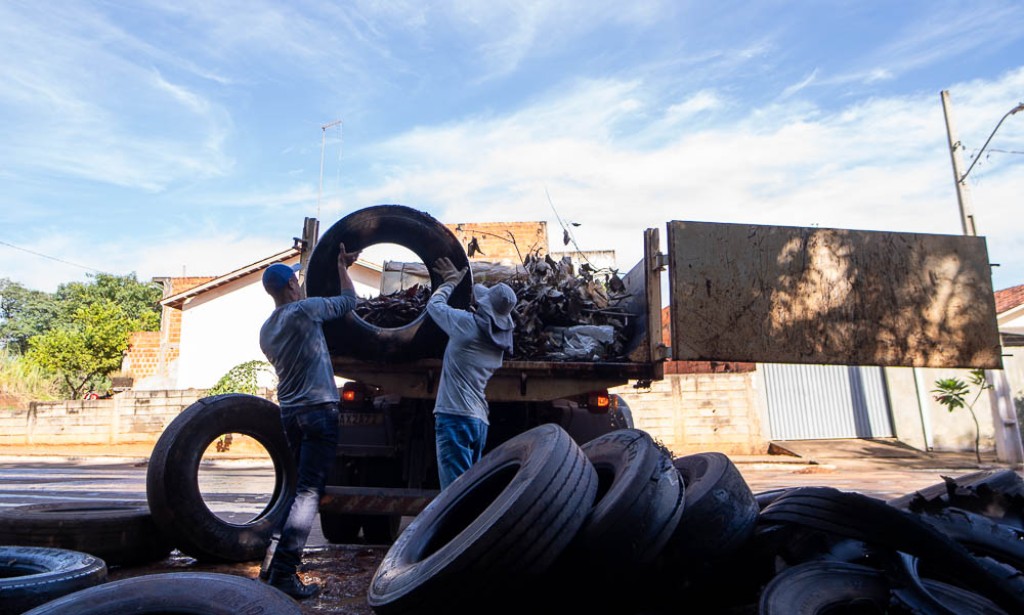 A Secretaria Municipal de Meio Ambiente, Agricultura e Pecuária fez a retirada de inúmeros pneus que estavam depositados em uma área verde no bairro João Moraes em Rondonópolis, na manhã desta segunda-feira (10). Os pneus estavam ao ar livre, com água acumulada, propiciando a formação de criadouros do mosquito Aedes aegypti transmissor de arboviroses como