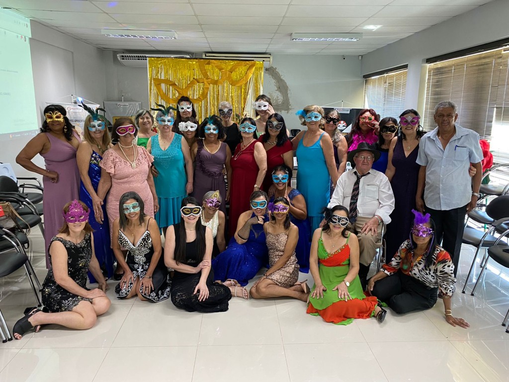 Servidores aposentados do programa de pós aposentadoria “Sorrisos não Envelhecem” deram um show de elegância no Baile de Máscaras realizado nesta quinta-feira (27), no auditório da instituição. O local foi decorado de acordo com a temática e os integrantes entraram no clima e não economizaram nos trajes. Postura imponente, homens e mulheres esbanjando simpatia, roupa