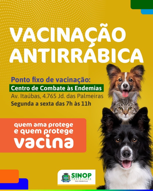 O Centro de Combate às Endemias já iniciou a campanha antirrábica 2024, com ponto fixo de atendimento de segunda a sexta-feira, das 7h às 11h. E neste sábado (09) começa a vacinação itinerante na zona rural de Sinop, iniciando pela Gleba Mercedes. Enquanto o dia D de vacinação é preparado, a população interessada em vacinar