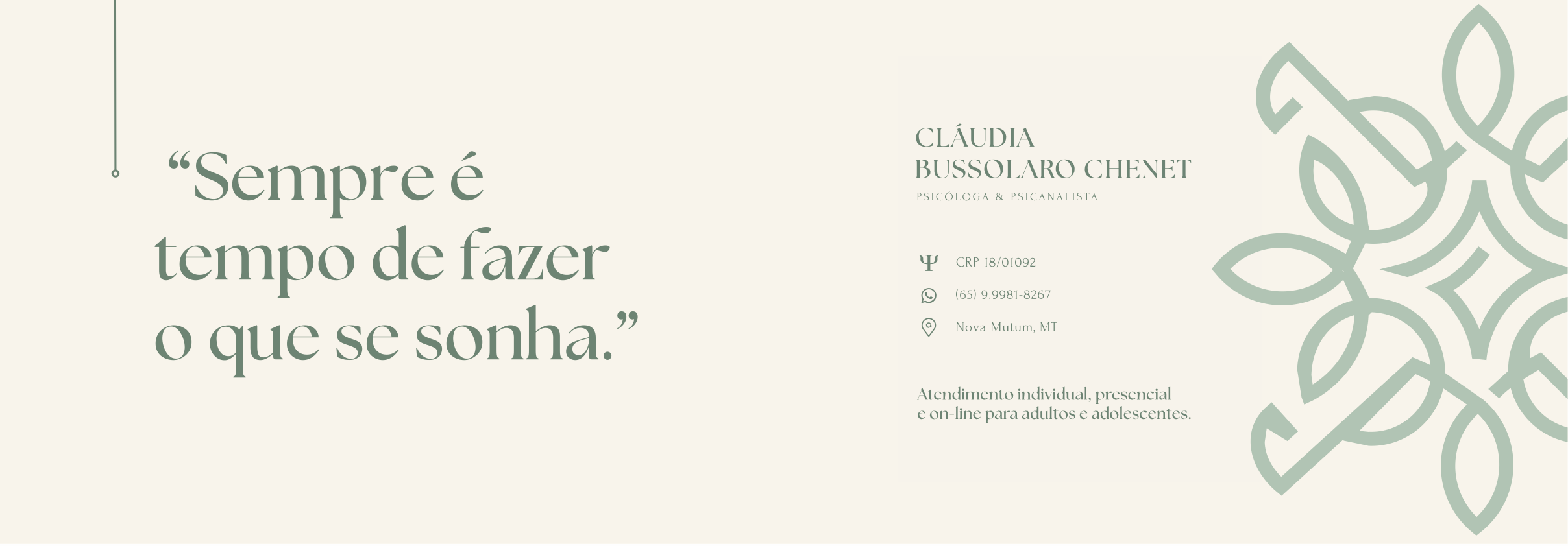 2023 foi o ano em que escolhi retomar o trabalho clínico. Foi então que, minha amiga Letícia, uma amizade que veio da nossa adolescência lá em Sorriso, sabendo da minha retomada aos atendimentos, tornou a me convidar para integrar o quadro de Profissionais da sua clínica. E assim, muito feliz e agradecida, reiniciei lá, no mesmo local de antes.