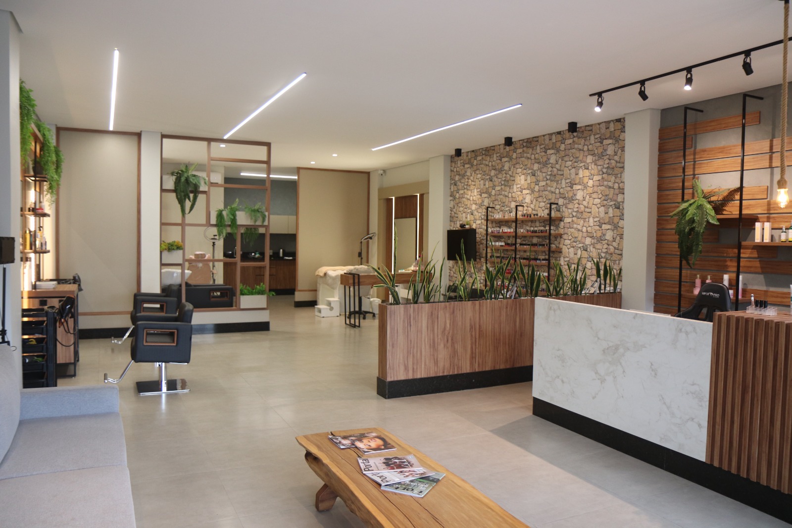 O Junior Gonçalves Hair atende desde corte de cabelos, masculino e feminino, mechas, química, hidratação, escova, terapia capilar, enquanto Naiane cuida de toda parte administrativa e financeira, mas também atua como maquiadora. O Salão conta também com designer de sobrancelhas, manicure, pedicure, extensão de cílios e limpeza de pele.