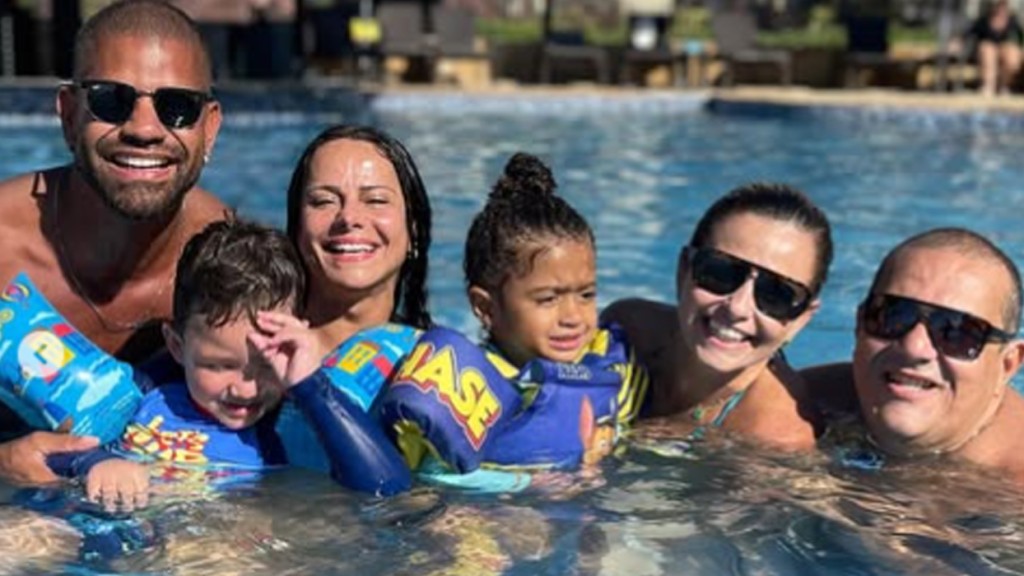 Viviane Araujo abriu um álbum de sua viagem em família por Aquiraz, no Ceará. A atriz, que está de férias das telinhas após o fim da novela Volta Por Cima, que acabou no final de abril, curtiu a piscina do hotel com o marido, Guilherme Militão, e o filho do casal, Joaquim, que completou dois anos em setembro do ano passado.